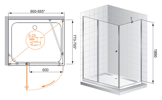 Душевой уголок Cezares Triumph D AH1 100/80 C Cr L