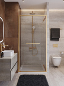Душевая дверь Cezares LUX-B-FS-1-90-C-BORO, 90х195, профиль брашированное золото, стекло прозрачное